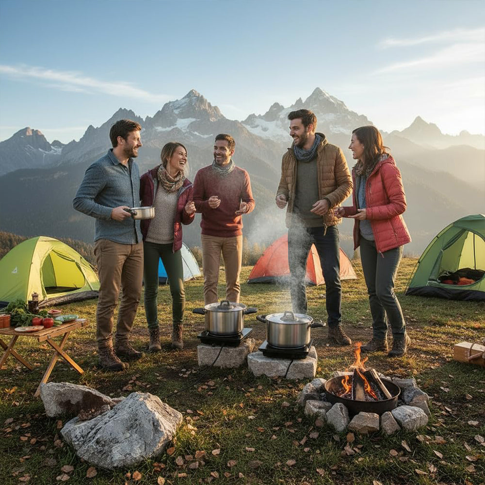 Cooking for 4–8 people over a fire is a different game. Larger capacity, stable handles, lids that actually seal.